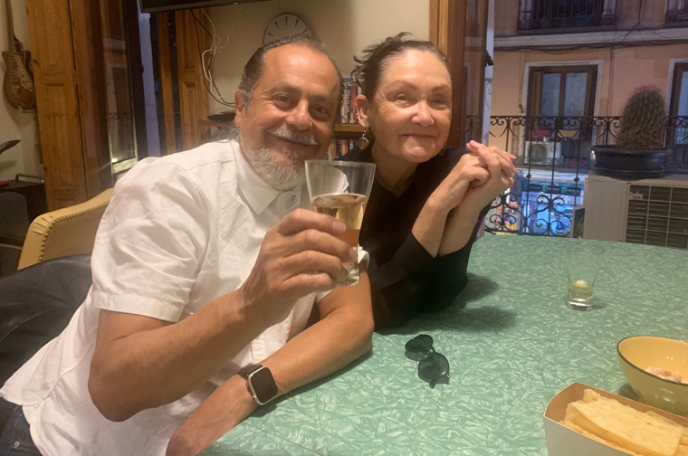 Tito Larriva, jeder sollte ihn kennen, den Sänger der Vampir-Band in „From Dusk Till Dawn“, dem spektakulären Thriller von Robert Rodriguez und Quentin Tarantino aus dem Jahr 1996. Tito, der in jedem der Rodriguez-Filme den Tod findet, aber mit seiner Band Tito & Tarantula seitdem vornehmlich in Europa am Touren ist, kam gerade zu Besuch in Madrid und wir hatten einen wunderbaren Abend mit diesem Super-Sympath und seiner brillanten Frau Janet.