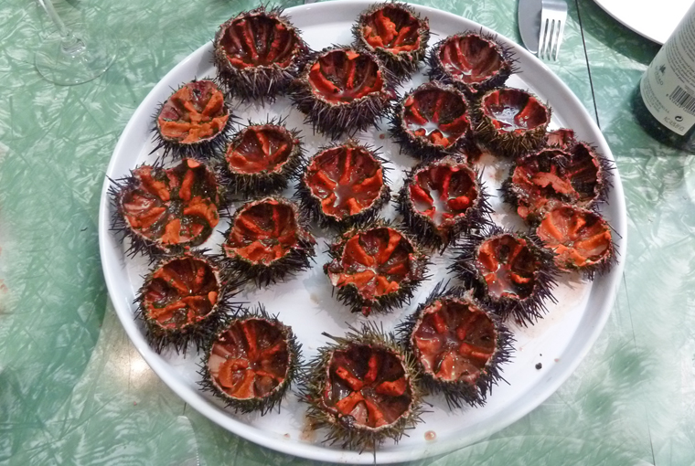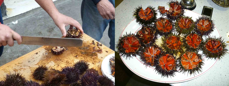 Los erizos de mar, o más bien los «elementos» naranjas que contienen, se comen crudos. Los italianos los mezclan crudos con espaguetis o tallarines finos, añadiendo tomates cherry, ajo asado y cebollino.