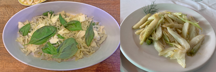 Previamente, calienta un molde de cerámica en el horno. Sácalo y añade un poco de aceite de oliva. A continuación, añade el hinojo y cubre con mantequilla derretida, parmesano rallado y, si es posible, unas hojas de albahaca. Gratínalo en el horno caliente durante unos 10 minutos.
