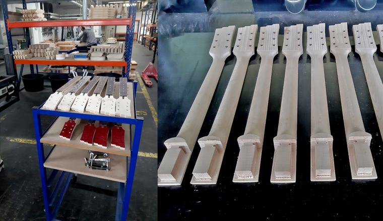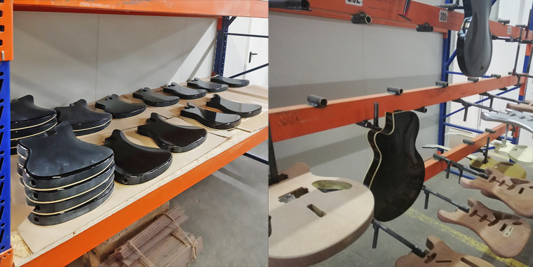 Well, they don't really grow out of the ground. And in Hanover we have a large CNC machine and the PLEK, both for more final work. The preliminary work, however, is done in our phenomenal factory in Croatia, the land of Modrić, Savić, Rakitić, Perisić and many other international soccer stars, so from raw wood to perfectly lacquered blank. The assembling, in turn, takes place by the finest hand in Hanover. Our factory is run by brothers Arijan and Alan Sabić, who grew up in Frankfurt, two crafty guys who build their own machines and have been involved in guitar production for ages, with the two of them having supplied us with blanks before and Arijan also being present with us in Hanover at times for various years. We have kept this a production secret over the years. But there are always these rumors started by evil, begrudging people that our guitars come from China or somewhere else. This has to stop now! See for yourself!