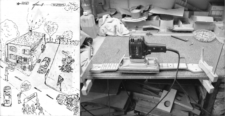 Para mostrar las muchas posibilidades de diseño del kit, había construido una guitarra en forma de bota de vaquero. Pensándolo ahora, no fue mi mejor idea de marketing. Un kit de tipo Stratocaster con características especiales habría sido mejor. Pero Rosberg supo ver la novedad que implicaba mi kit.